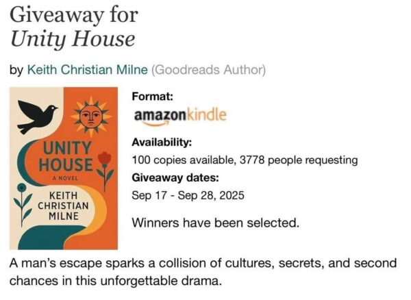 Congratulations to 100 lucky winners of a free digital copy of my new novel, Unity House! đźŹ